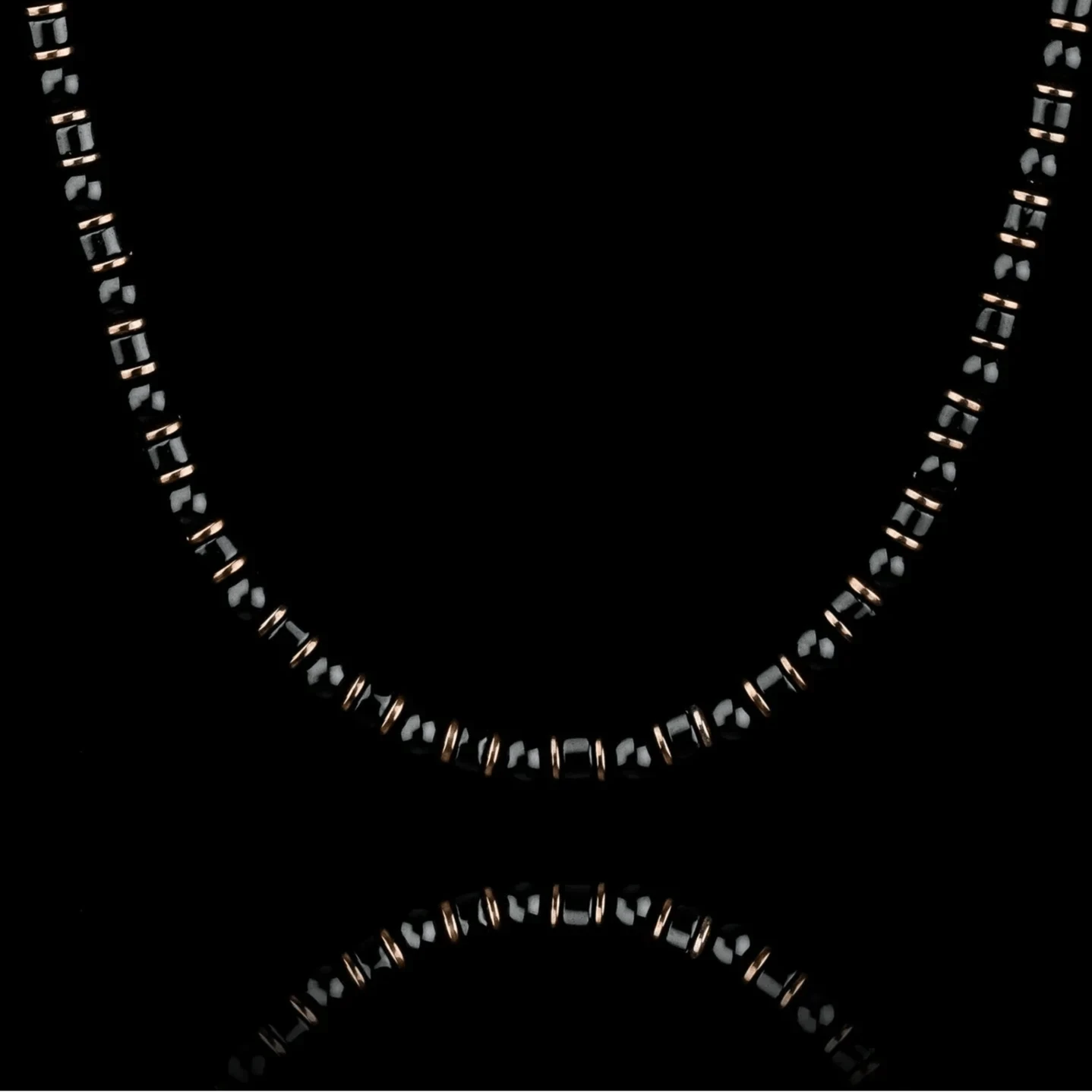 Complete your outfit with our Black Onyx Necklace V (4mm). Handcrafted in The Netherlands by professional artisans with the best Nature has to offer and finished with 925 Sterling Silver.