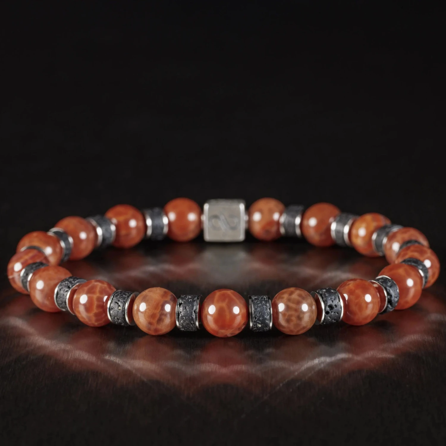 Complete your outfit with our Fire Agate – Lava Bracelet I (8mm). Handcrafted in The Netherlands by professional artisans with the best Nature has to offer and finished with 925 Sterling Silver.