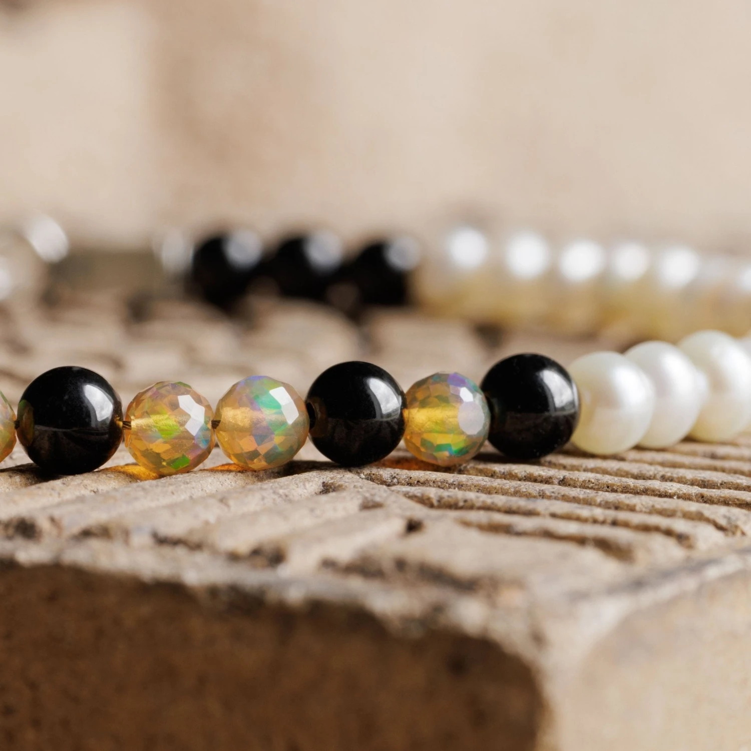 Be the first to review “Golden Ethiopian Opal-White Pearl-Black Tourmaline Bracelet I (3.5-4.5mm)” Cancel reply