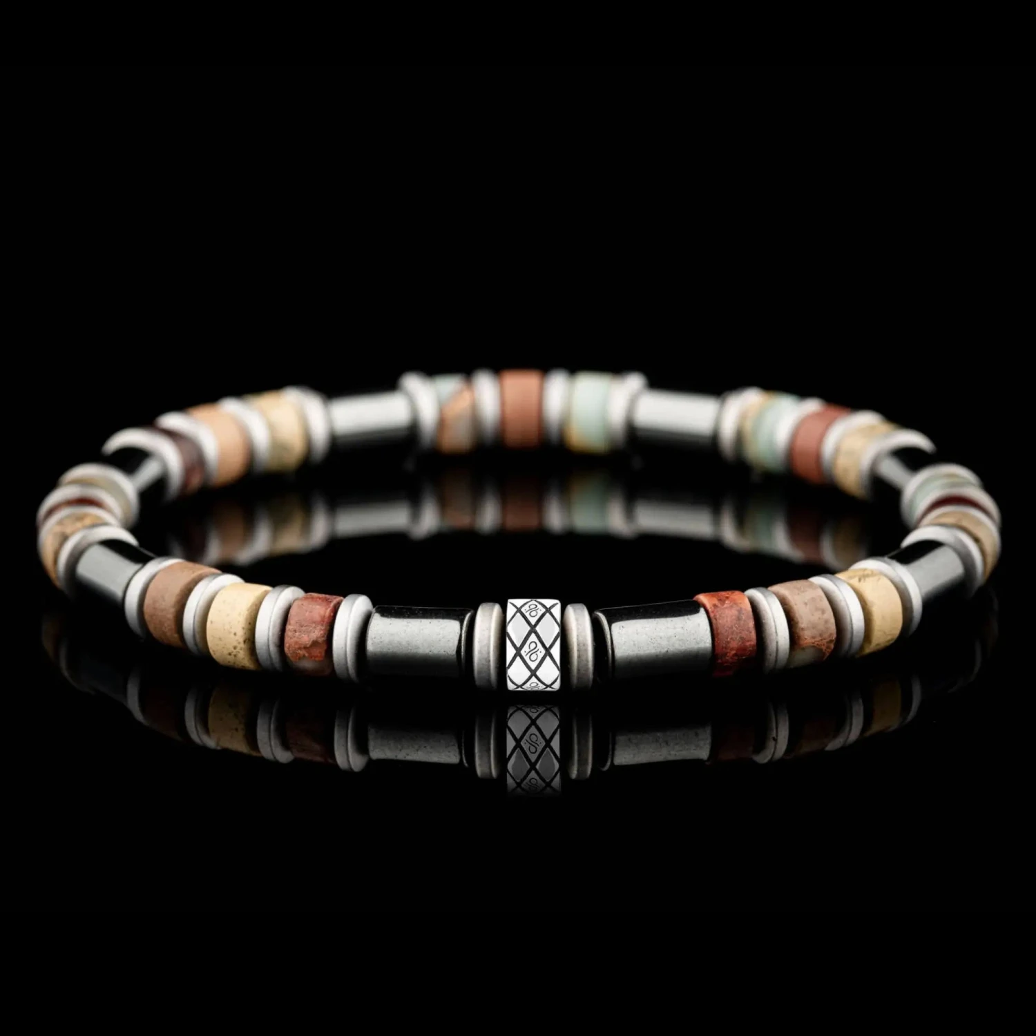 Complete your outfit with ourImperial Jasper & Hematite bracelet. Handcrafted in The Netherlands by professional artisans with the best Nature has to offer and finished with 925 Sterling Silver.