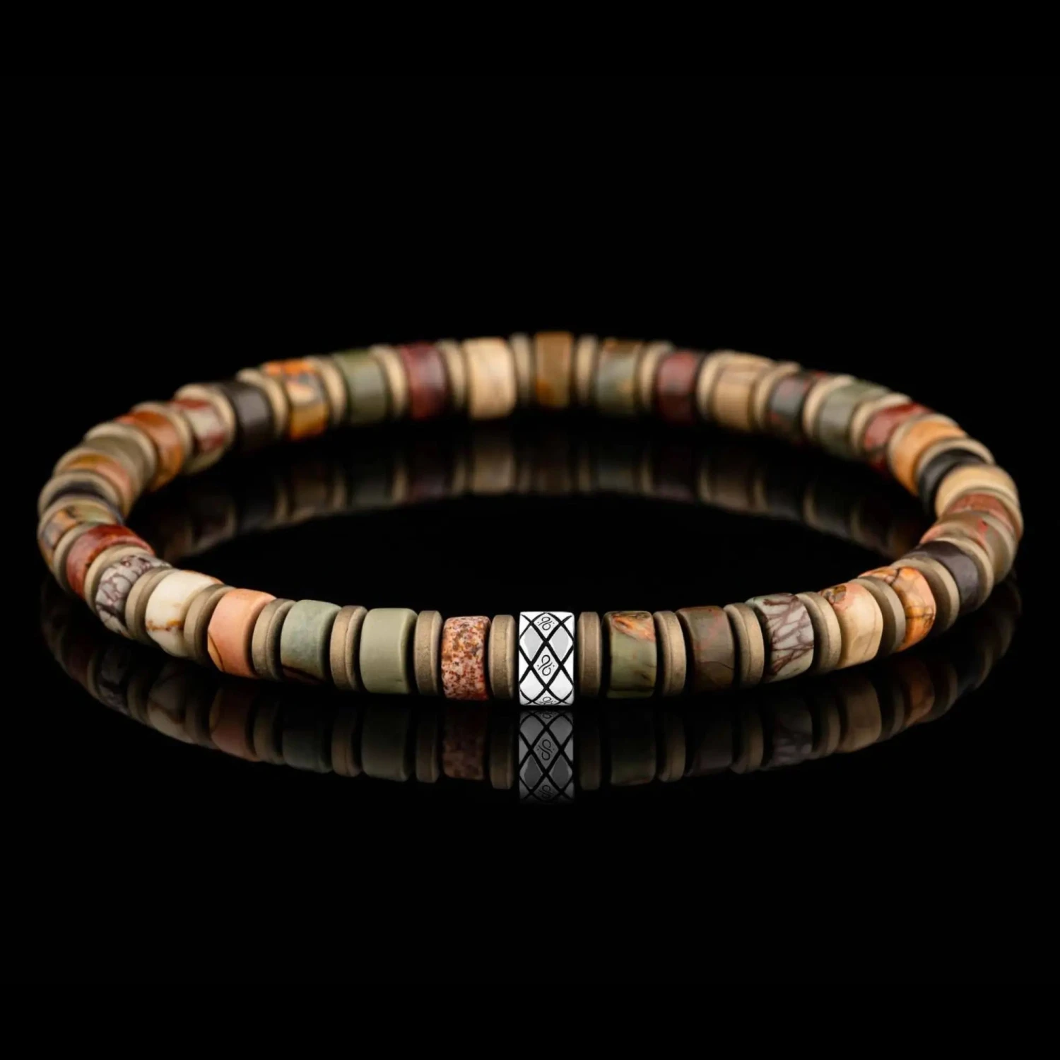 Complete your outfit with our Multicolor Picasso Jasper bracelet. Handcrafted in The Netherlands by professional artisans with the best Nature has to offer and finished with 925 Sterling Silver.