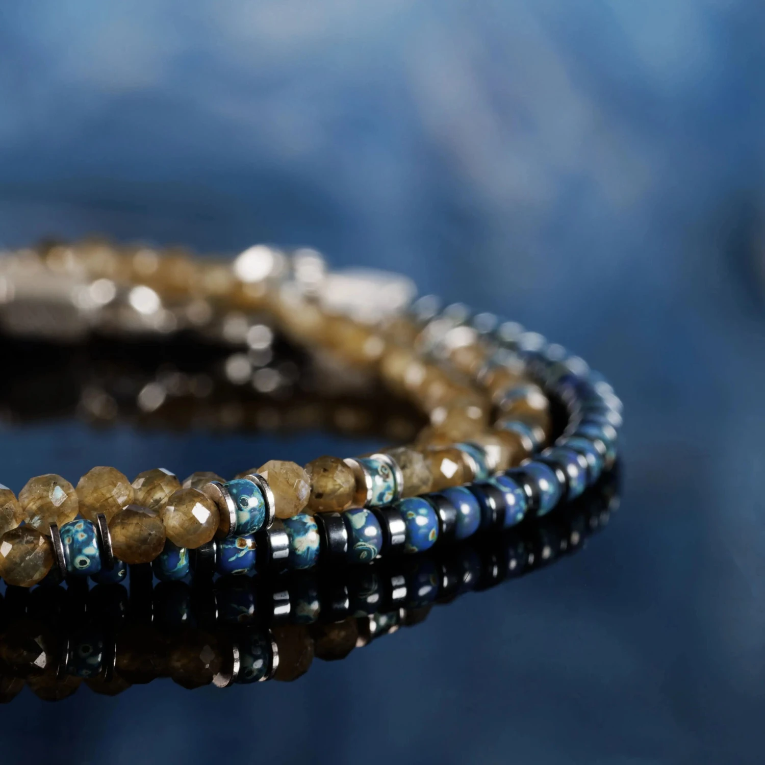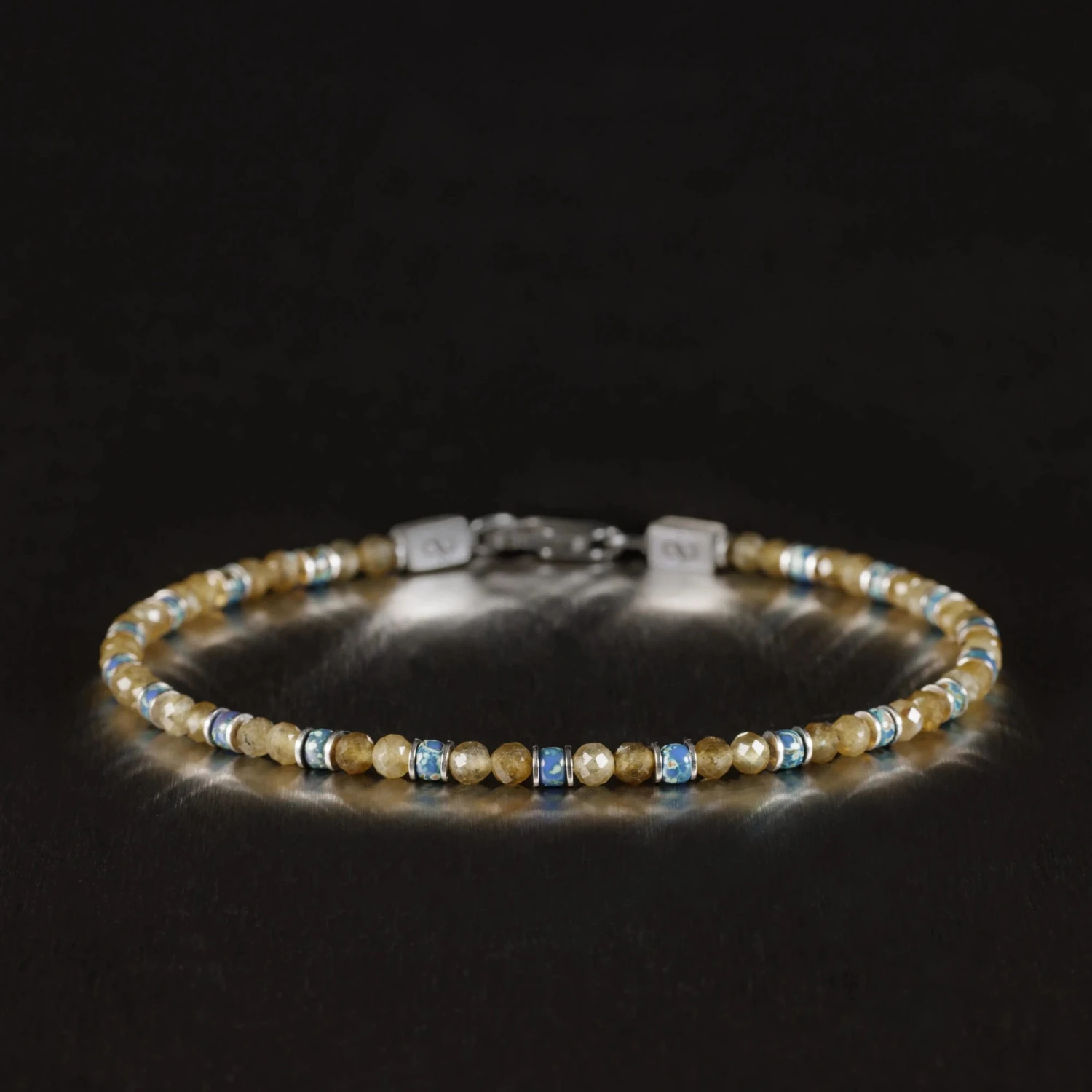 Complete your outfit with our Mustard Yellow Labradorite – Picasso Blue Bracelet II (3mm). Handcrafted in The Netherlands by professional artisans with the best Nature has to offer and finished with 925 Sterling Silver.