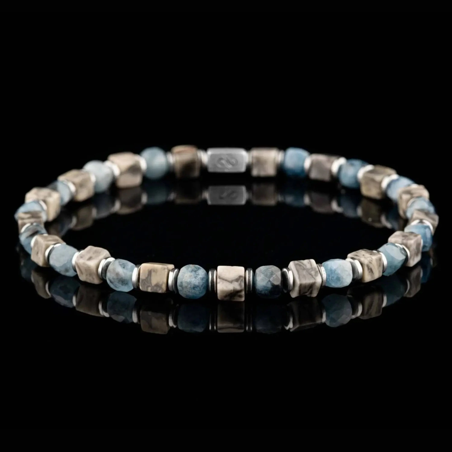Complete your outfit with our Picasso Jasper & Aquamarine bracelet. Handcrafted in The Netherlands by professional artisans with the best Nature has to offer and finished with 925 Sterling Silver.