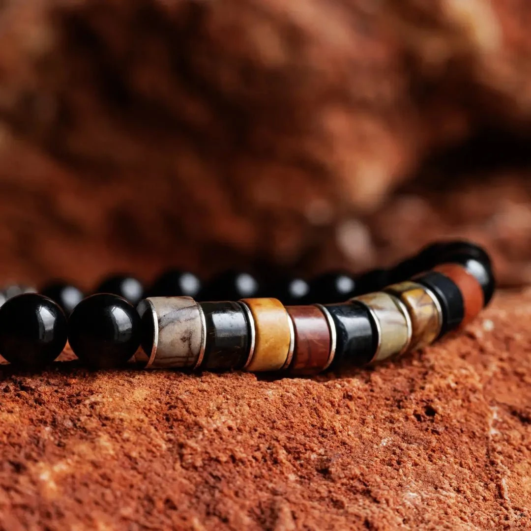 Complete your outfit with our Red Creek Jasper/Blue Tiger Eye – Black Tourmaline Bracelet III (6mm). Handcrafted in The Netherlands by professional artisans with the best Nature has to offer and finished with 925 Sterling Silver.