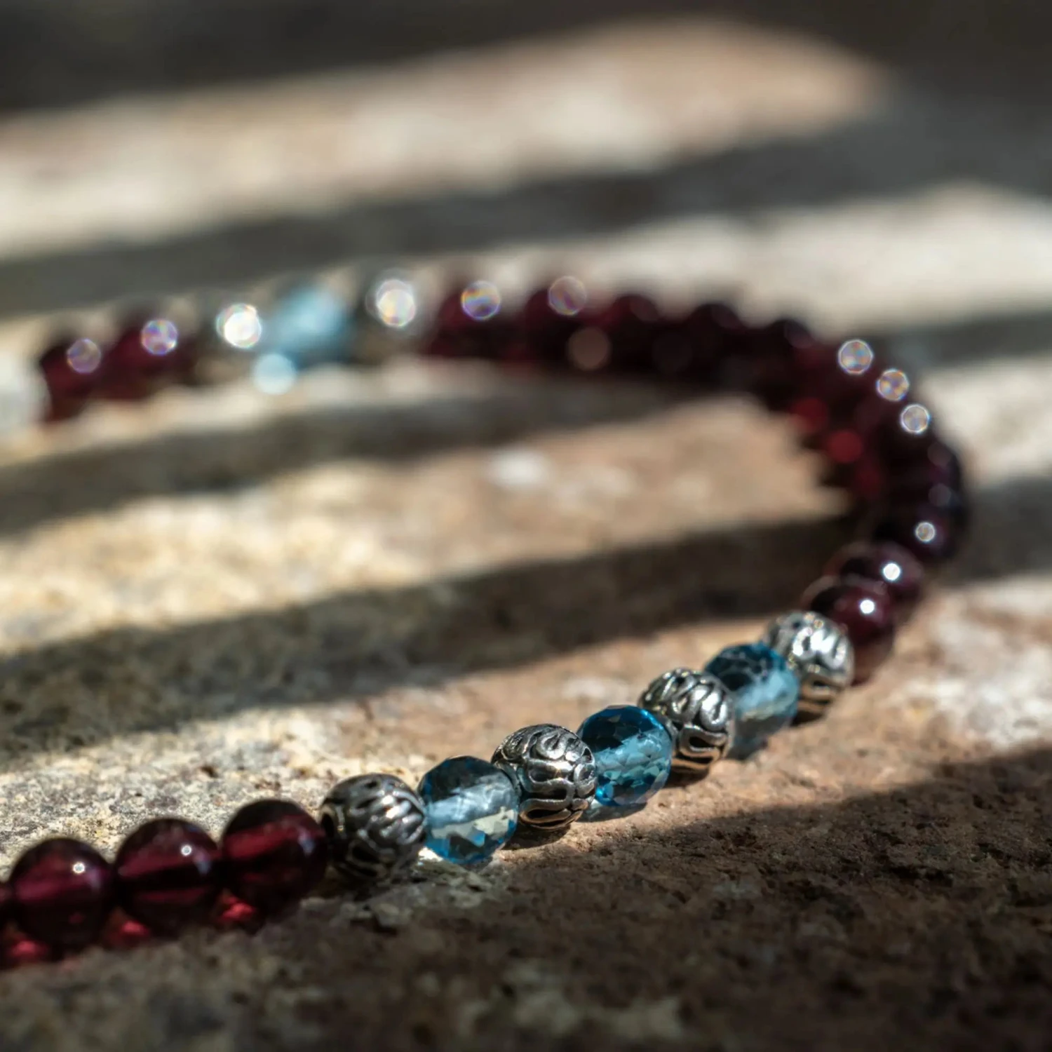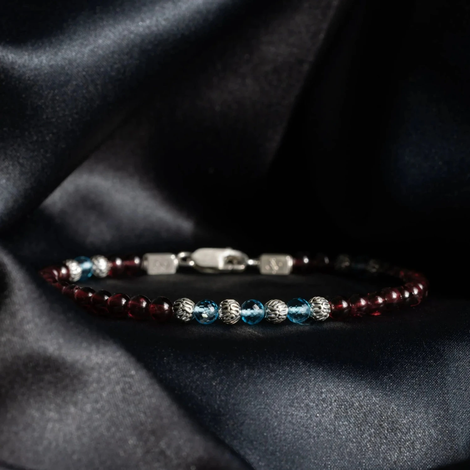 Be the first to review “Swiss Blue Topaz – Red Garnet Bracelet VII (3.5 – 4mm)” Cancel reply