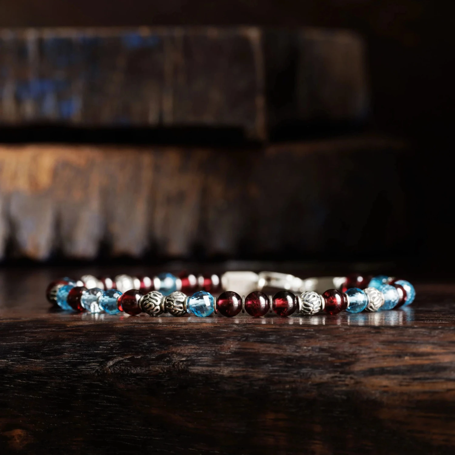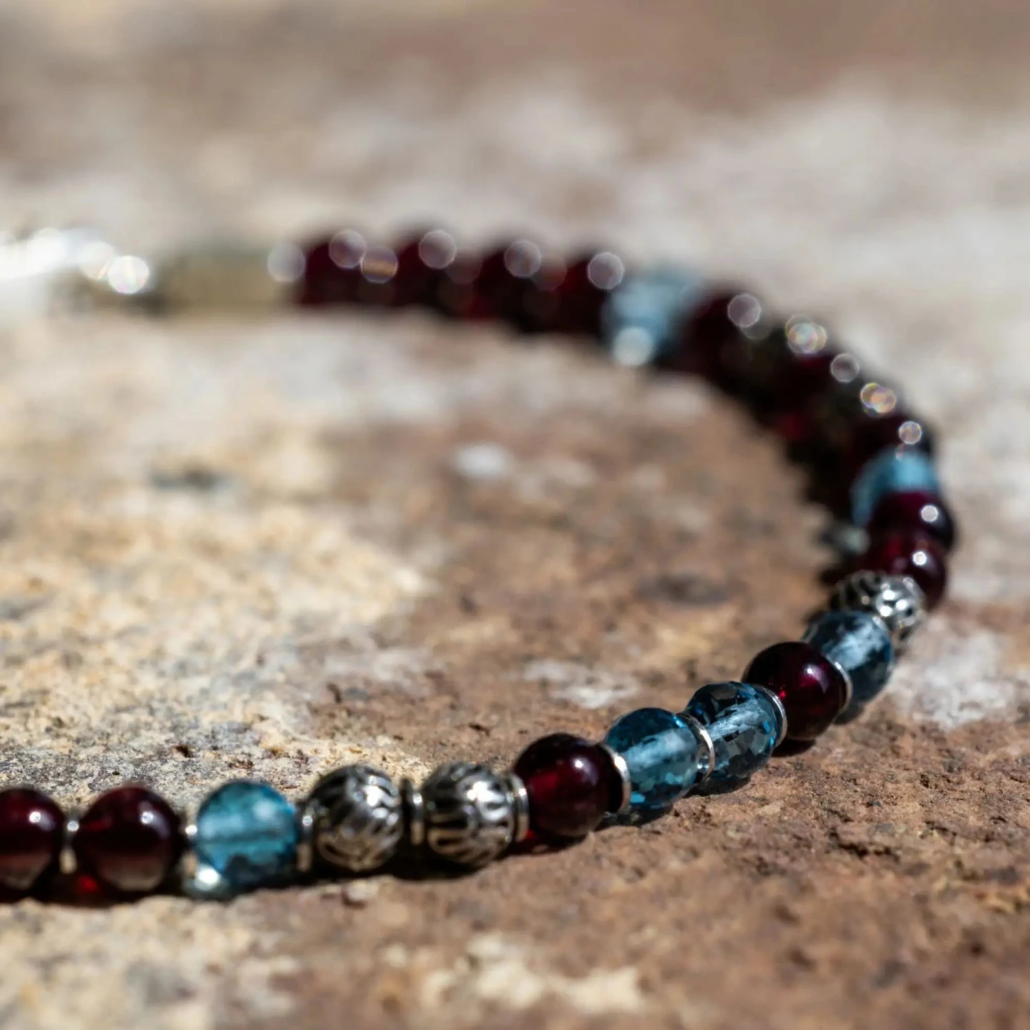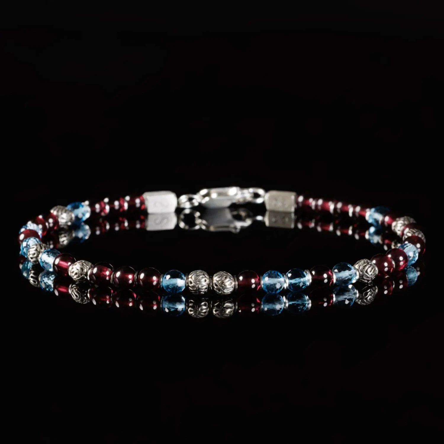 Be the first to review “Swiss Blue Topaz – Red Garnet Bracelet VIII (3.5 – 4mm)” Cancel reply