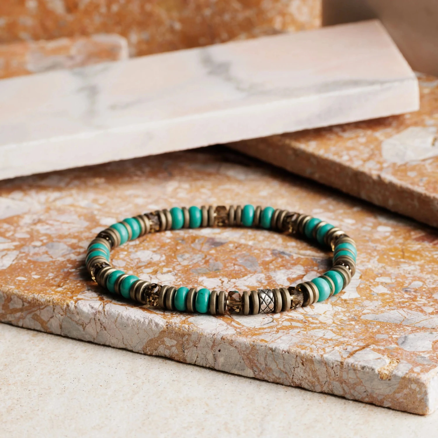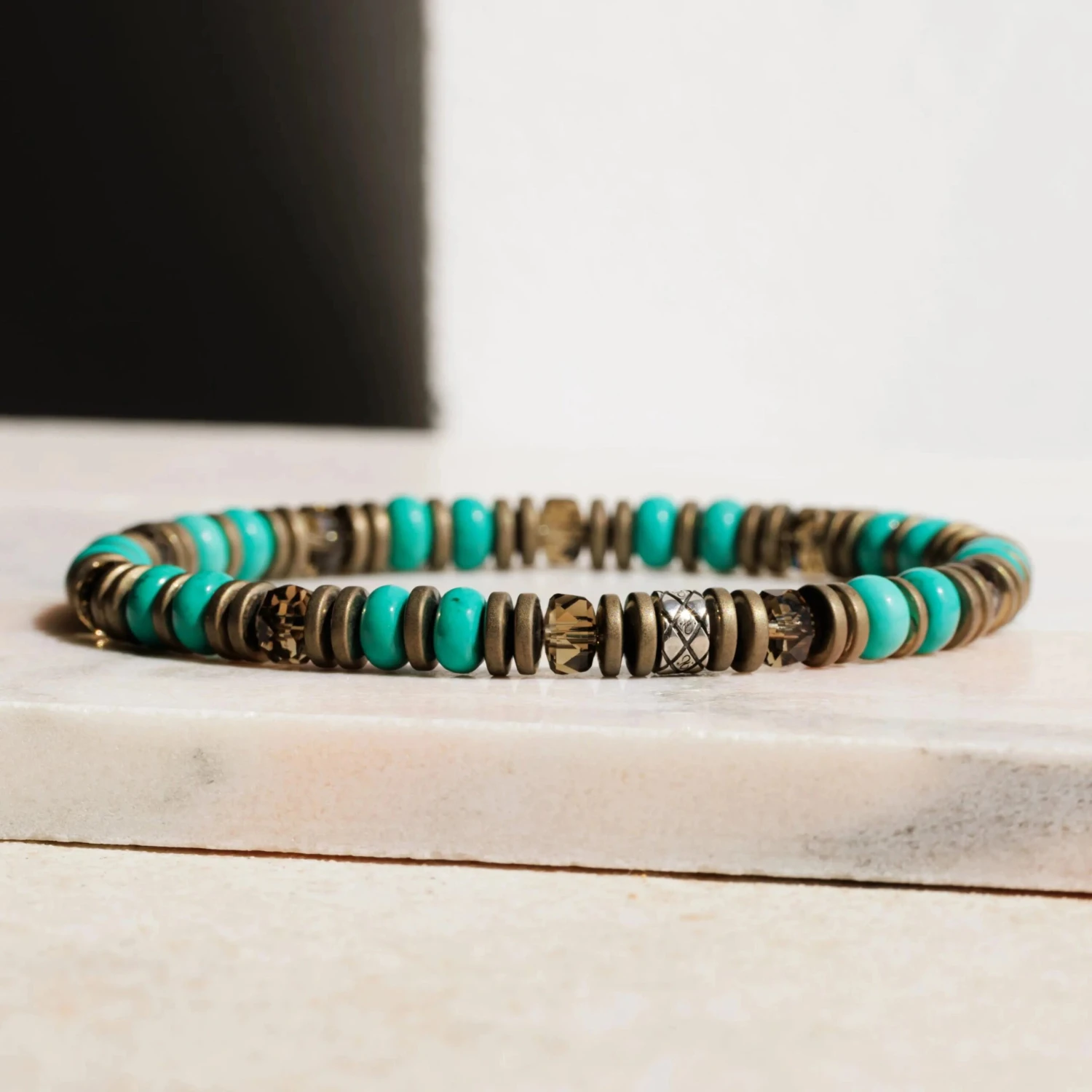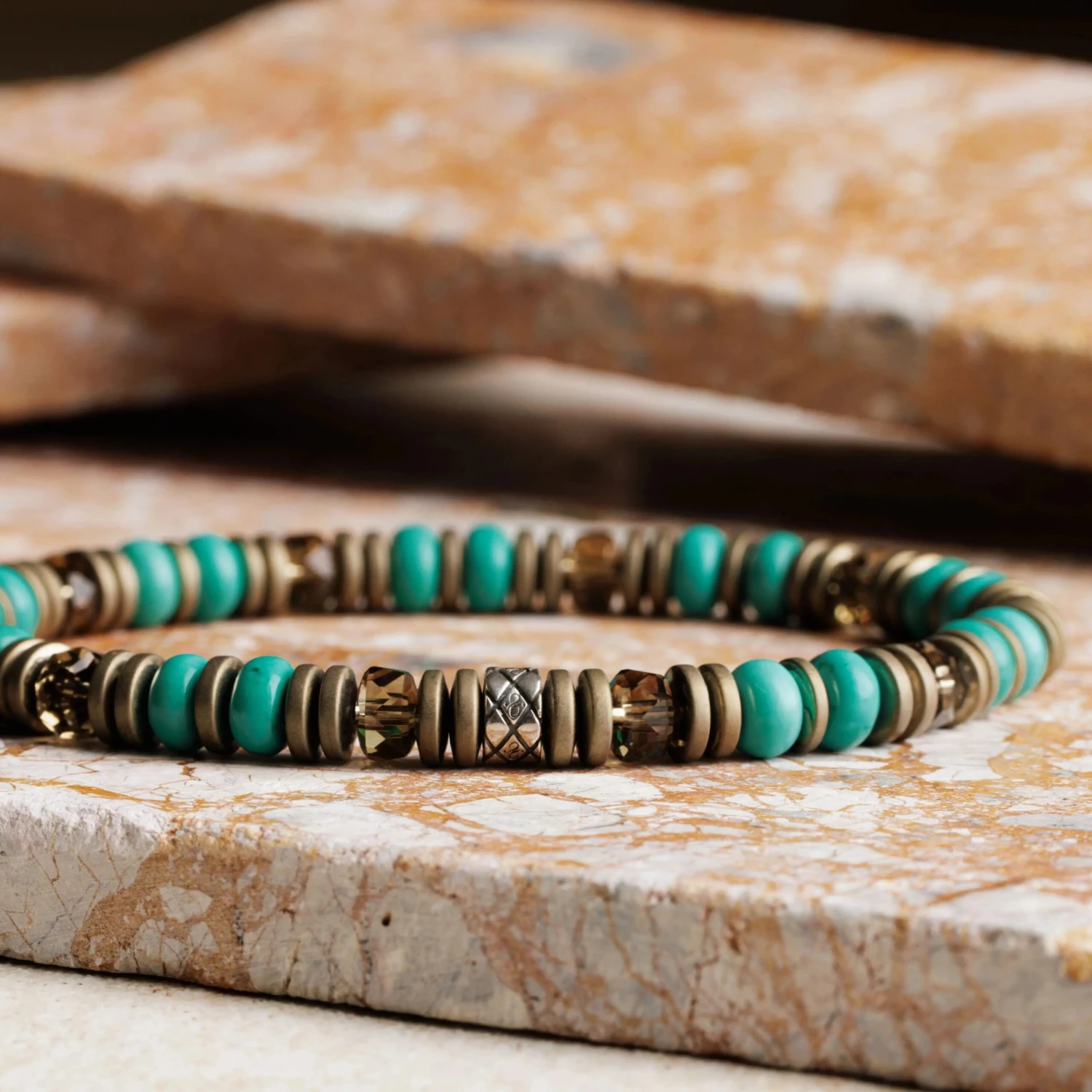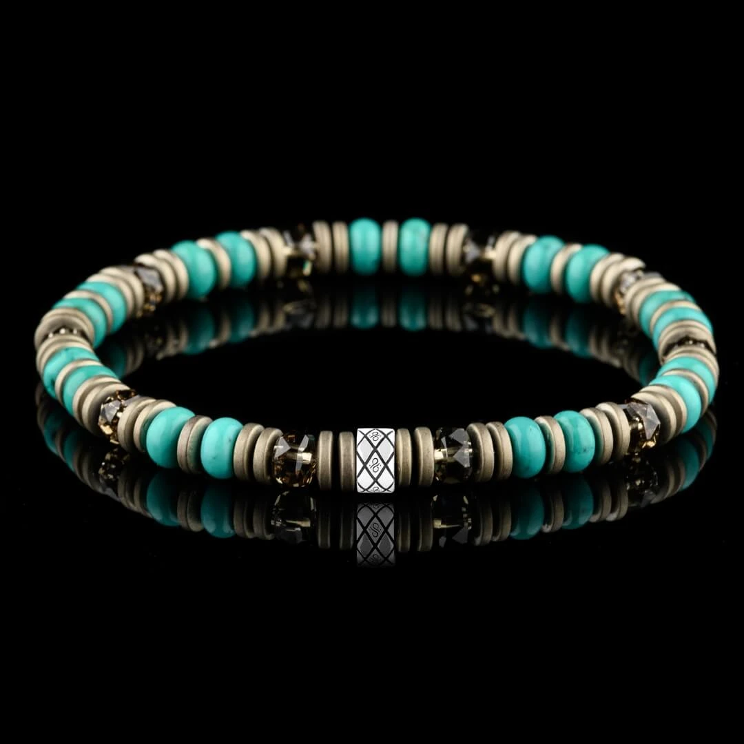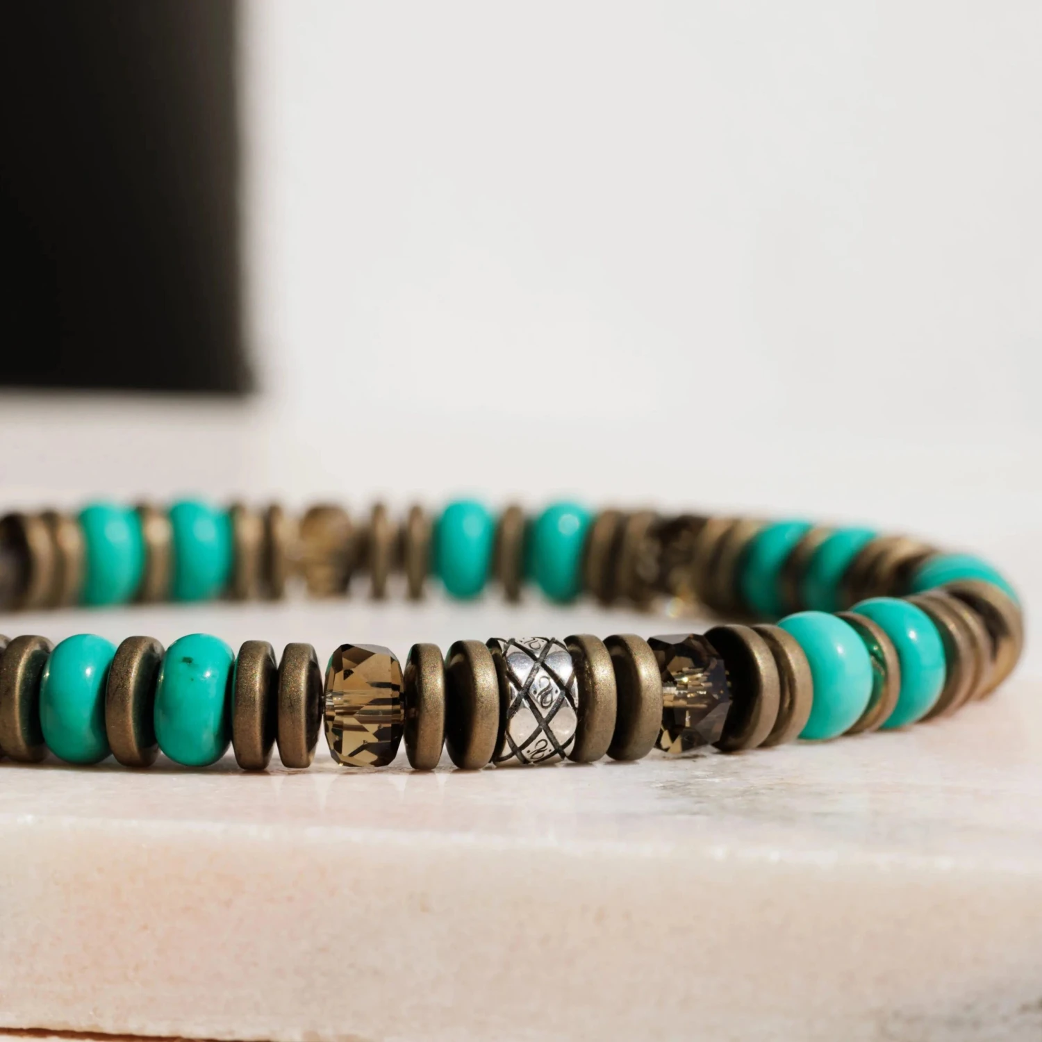 Complete your outfit with our Turquoise – Bronze Hematite Bracelet I (6mm). Handcrafted in The Netherlands by professional artisans with the best Nature has to offer and finished with 925 Sterling Silver.