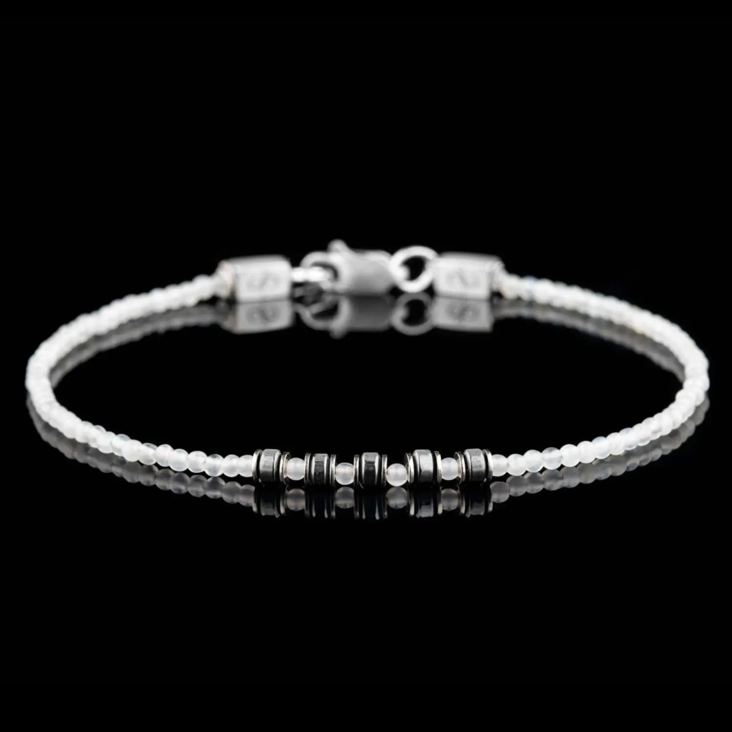 Complete your outfit with our White Moonstone Bracelet VIII. Handcrafted in The Netherlands by professional artisans with the best Nature has to offer and finished with 925 Sterling Silver.