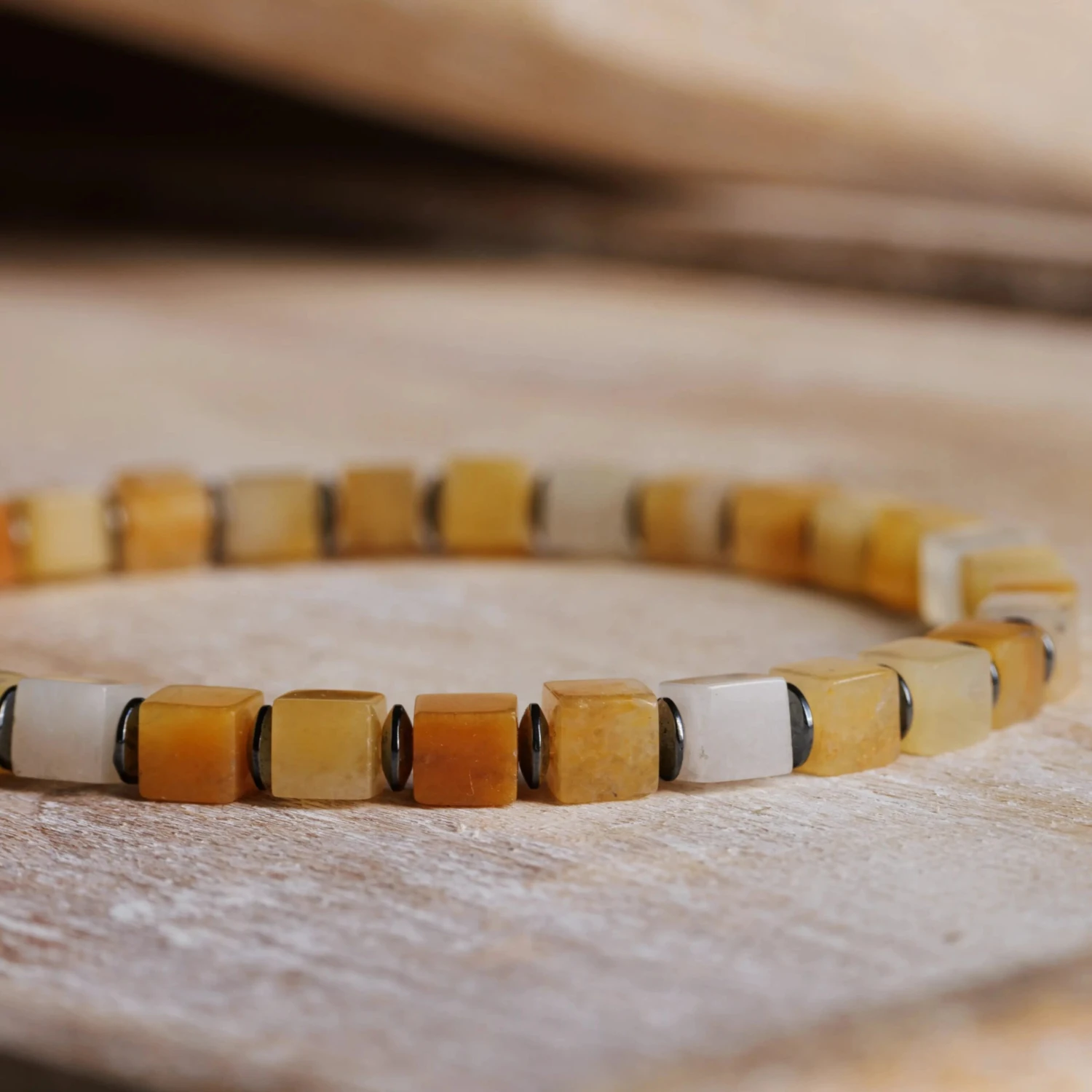 Complete your outfit with our Yellow Jade – Cube Bracelet VII (4mm). Handcrafted in The Netherlands by professional artisans with the best Nature has to offer and finished with 925 Sterling Silver.